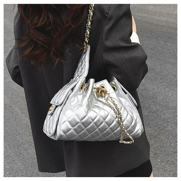 Tas Ember Vintage Dengan Pola Kotak-Kotak dan Rantai