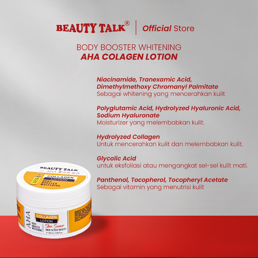 Beauty Talk Aha Collagen Lotion 100Ml - Lotion Pencerah Kulit, Body Booster & Whitening Efektif
