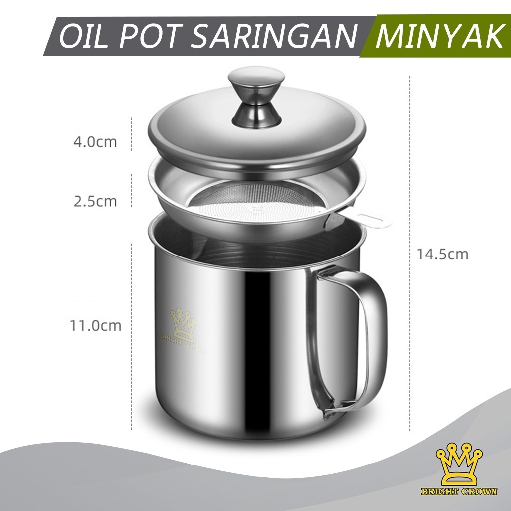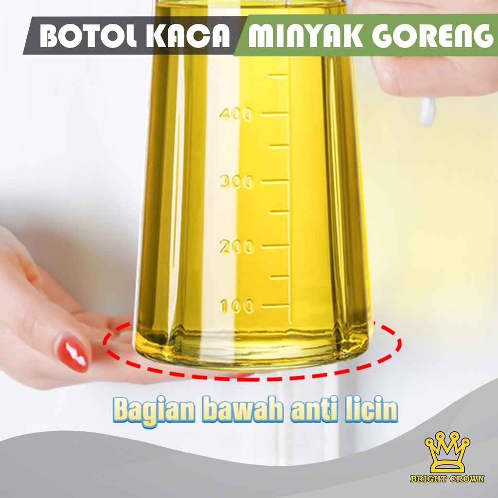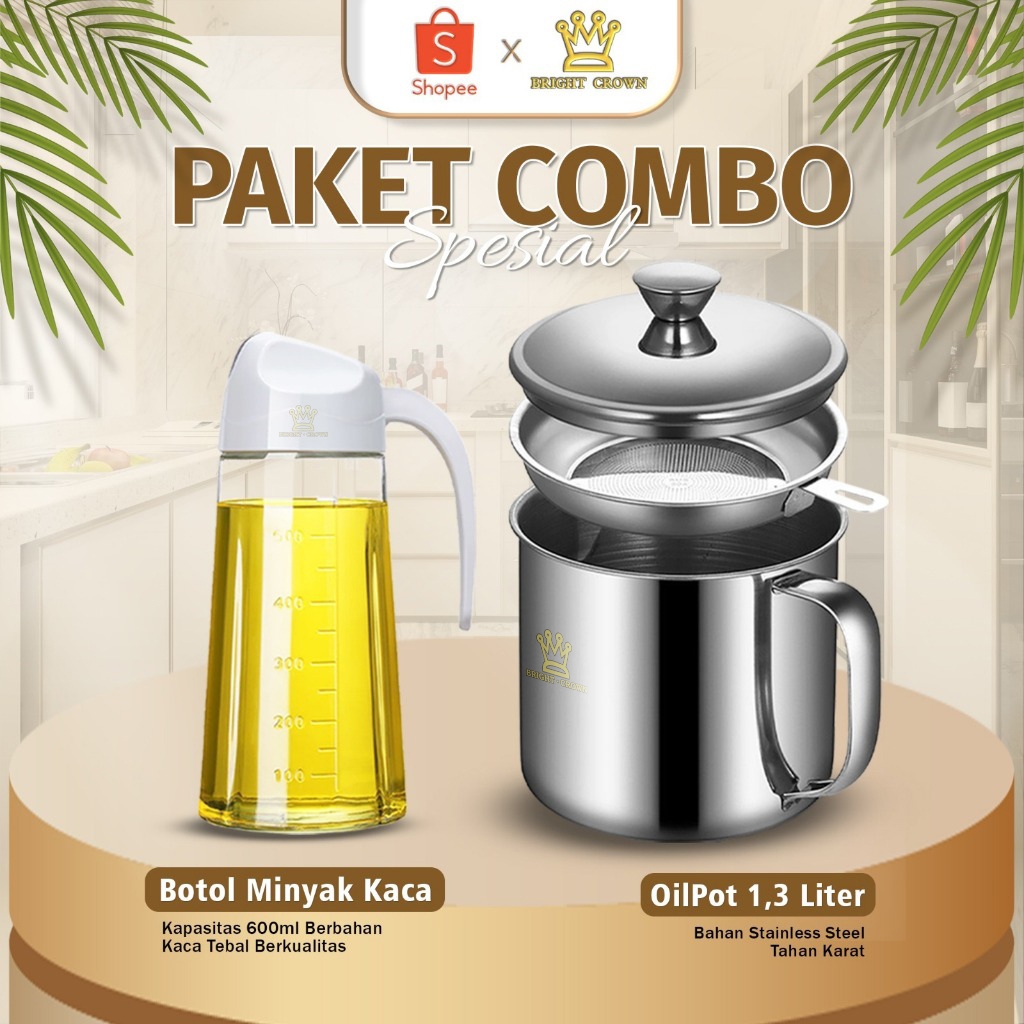Bright Crown Paket Spesial Botol Minyak Kaca 630ML + Oil Pot Wadah Minyak Stainless Steel 1,3Liter