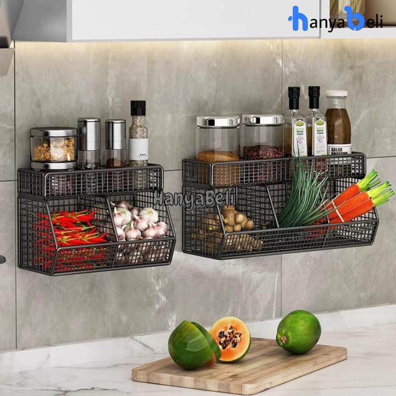 Rak Bawang Rak Bumbu Rak Keranjang Tempel Dinding Rak Dapur Anti karat
