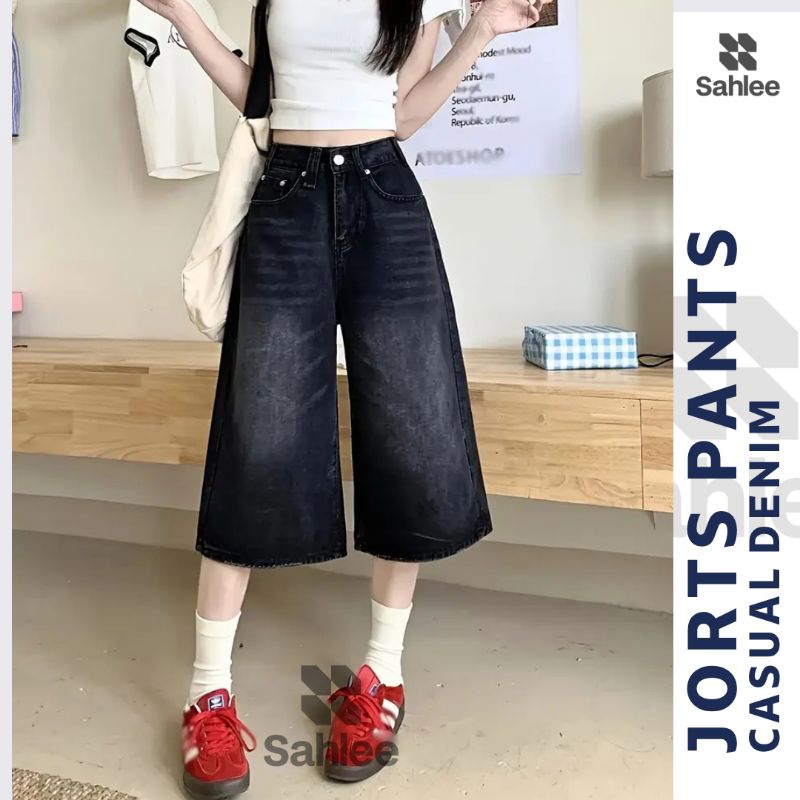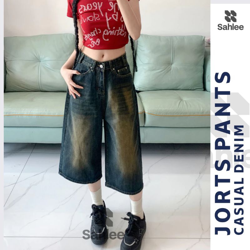 Celana Jorts Jeans Baggy Loose Panjang Wanita - Sahlee Celana Jeans Wanita 7/8