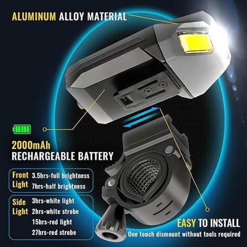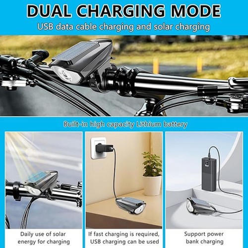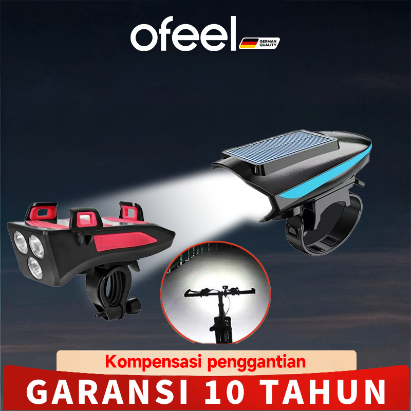 OFEEL Lampu Depan Sepeda Tenaga Surya Headlamp Aksesoris Sepeda Light Waterproof Multifungsi 4in1