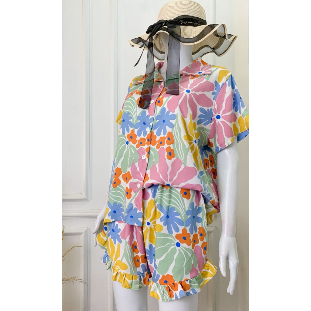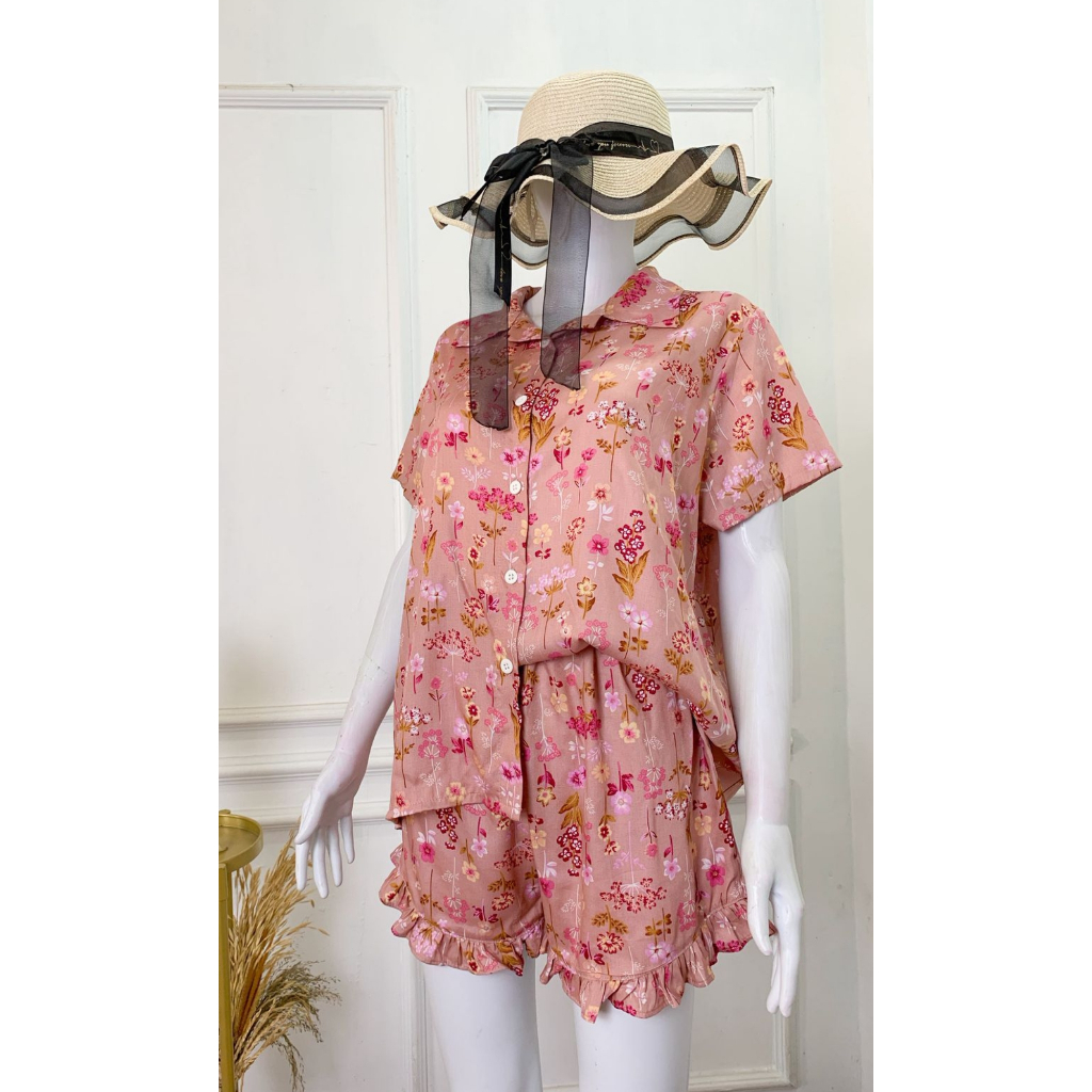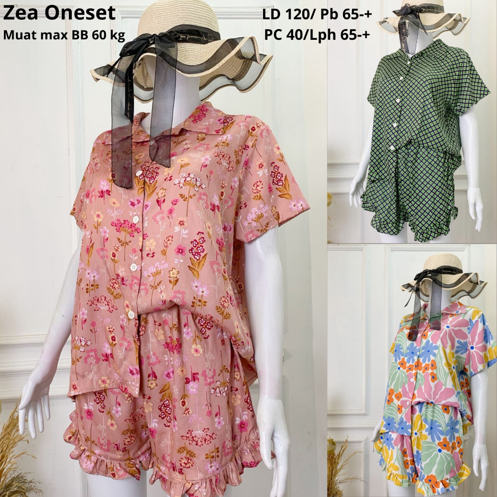 Zea Oneset Setelan Pendek Busui Kancing Depan Bahan Rayon Premium Aksen Kerah Celana Kriwil