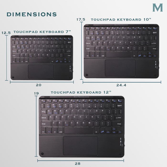 Mils Technologies Touchpad Bluetooth Keyboard 7 10 12 inch for iPad Huawei Samsung