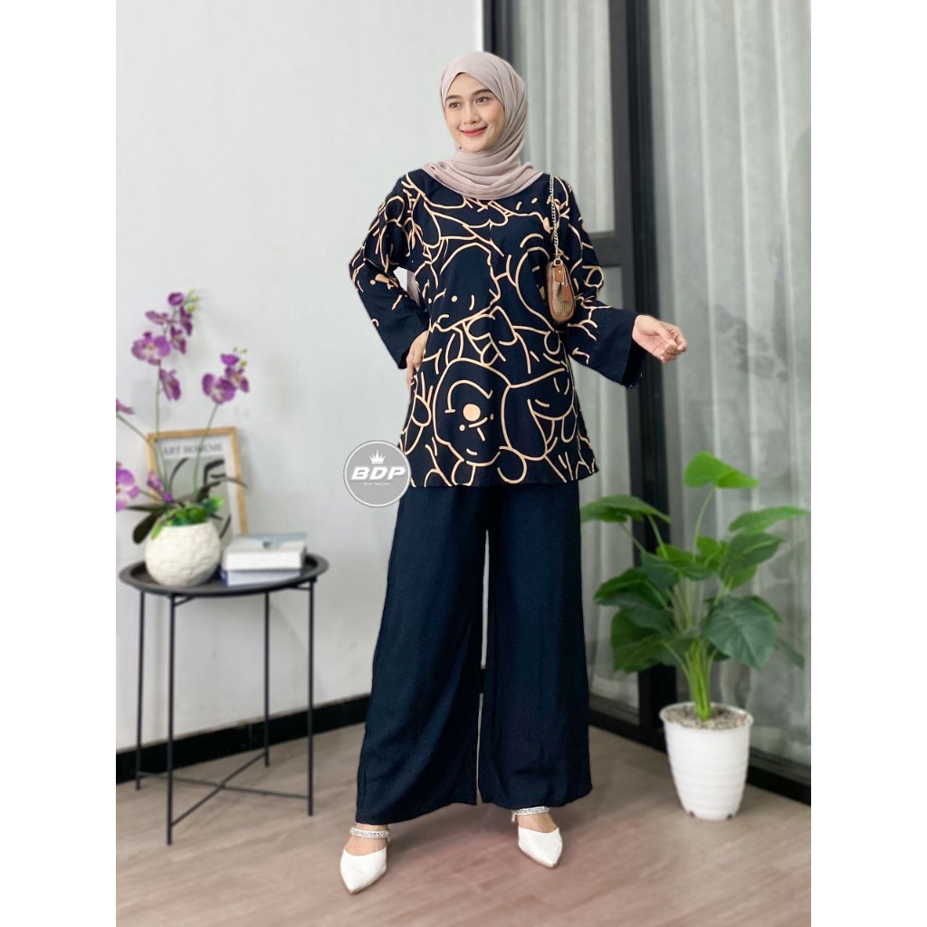 Dianputri - One set Wanita Rayon Busui Resleting Depan Setelan Wanita Kekinian Stelan wanita Terbaru