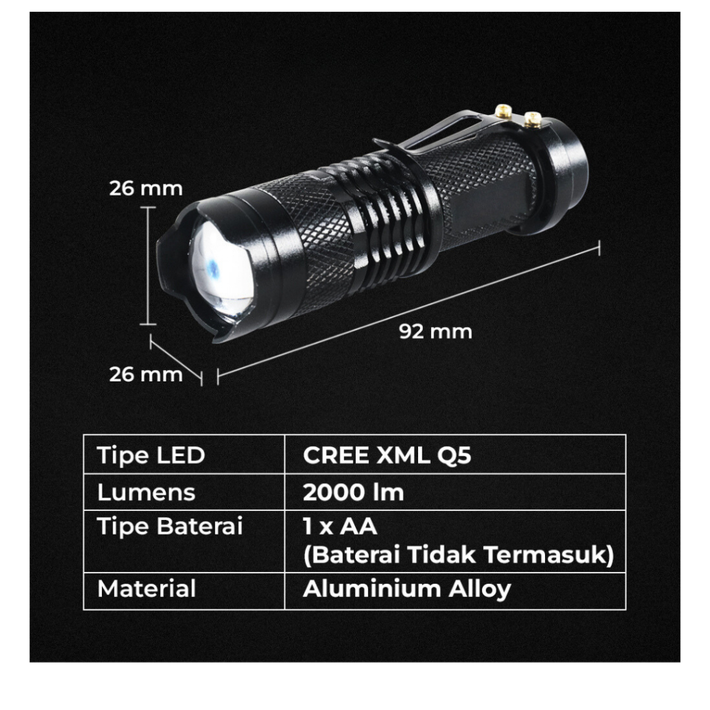 CREDIFOX Senter LED Zoom Waterproof 2000 Lumens - Senter Outdoor Hiking - Senter Gunung