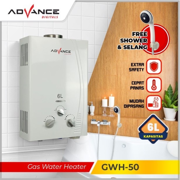 Water Heater Advance GWH 50 GWH 60 6L PEMANAS AIR GAS DIGITAL DAN OTOMATIS Gas Water hiter