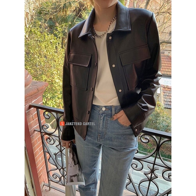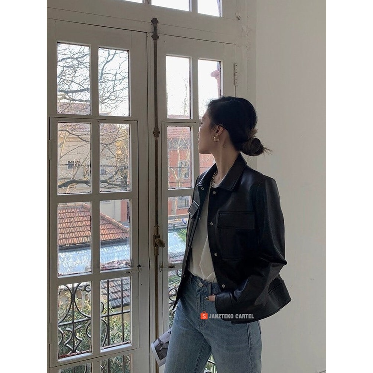 Jnk X Elma - Jaket Kulit Casual Pria Wanita Leather Jacket Synthetic Reguler Premium Trendy Cewek Cowok Perempuan Laki L