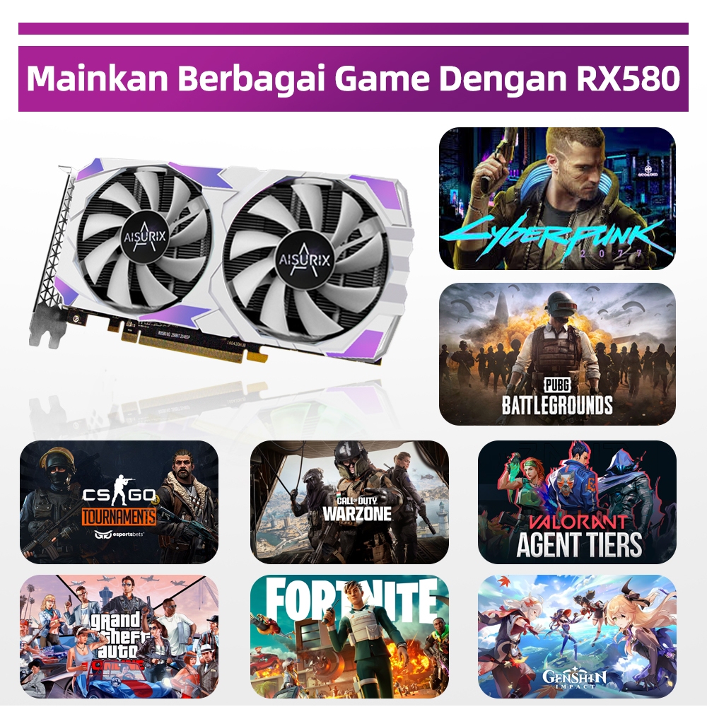 AISURIX RGB Glowing Graphics Card RX 580 8GB DDR5 256Bit 2048SP Versi E-Sports - Gaming VGA Card