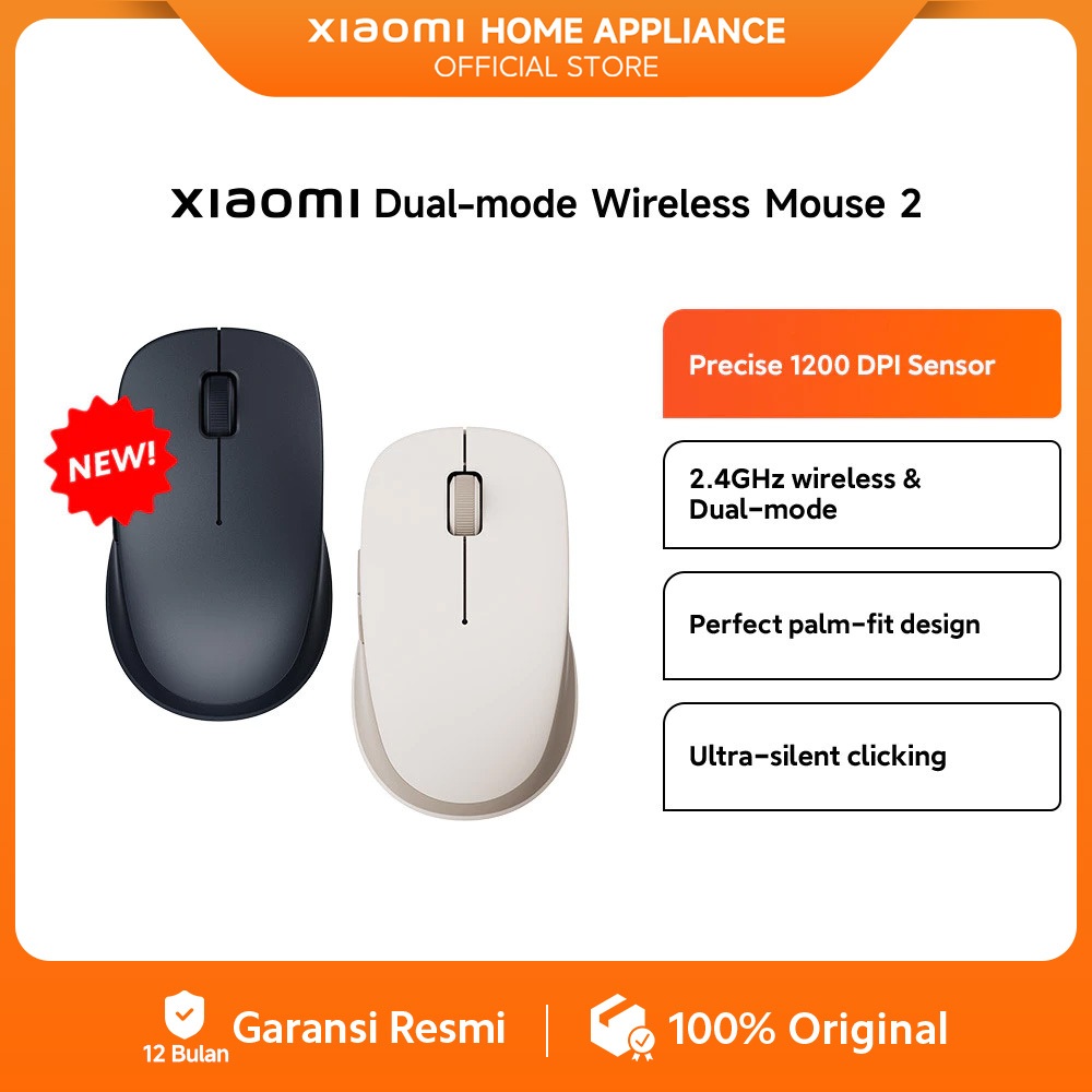 Xiaomi Dual mode Wireless Mouse 2 | Precise 1200 DPI Sensor | 2.4GHz wireless & Dual-mode | Palm-fit design | Ultra-sile
