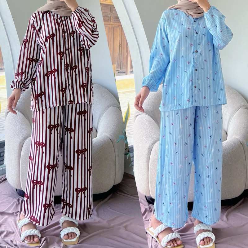 Oneset Rayon Premium Kekinian Piyama Wanita Adem Busui Bumil Friendly Sadda Set