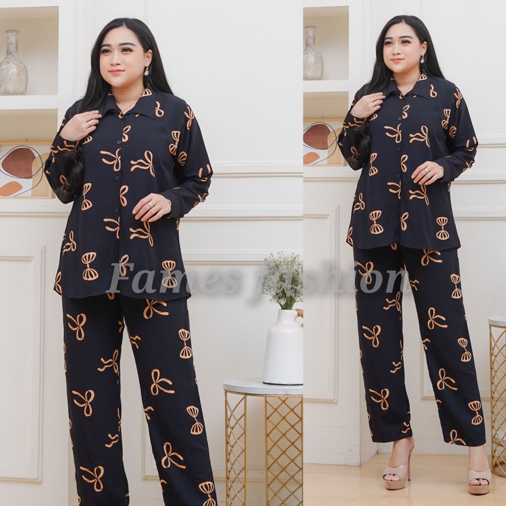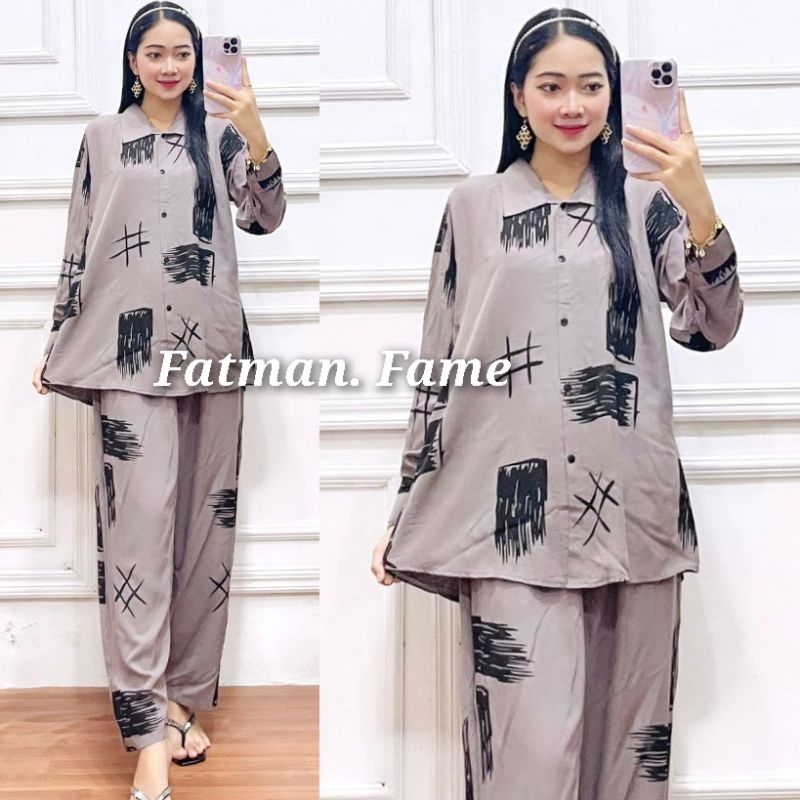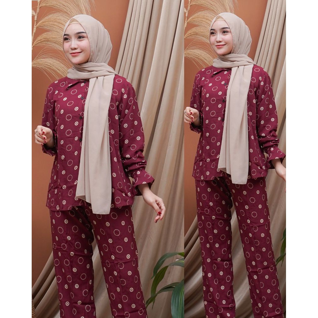 SETELAN WANITA MOTIF KOTAK LENGAN PANJANGONSET WANITA PREMIUM