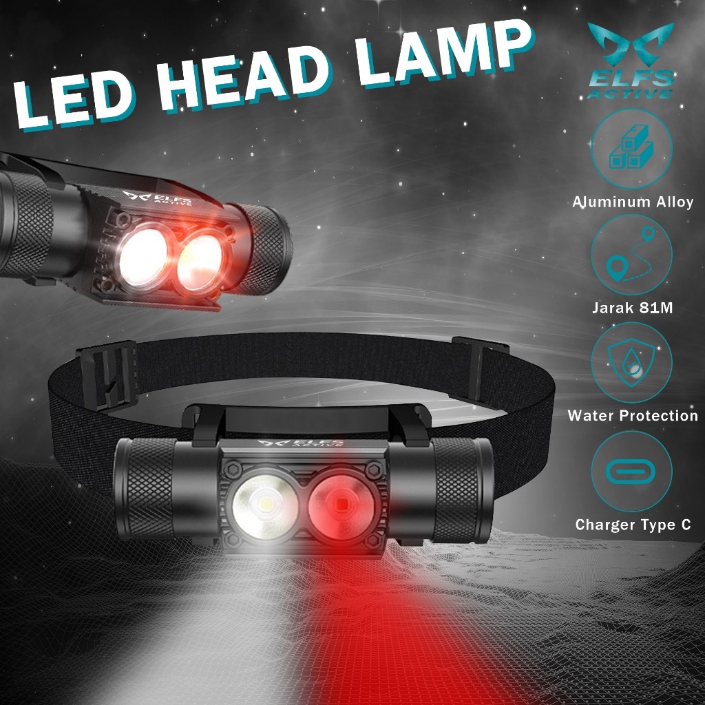 Elfs Active Senter kepala LED Head Lamp 566 Lumen Lampu Hiking Camping