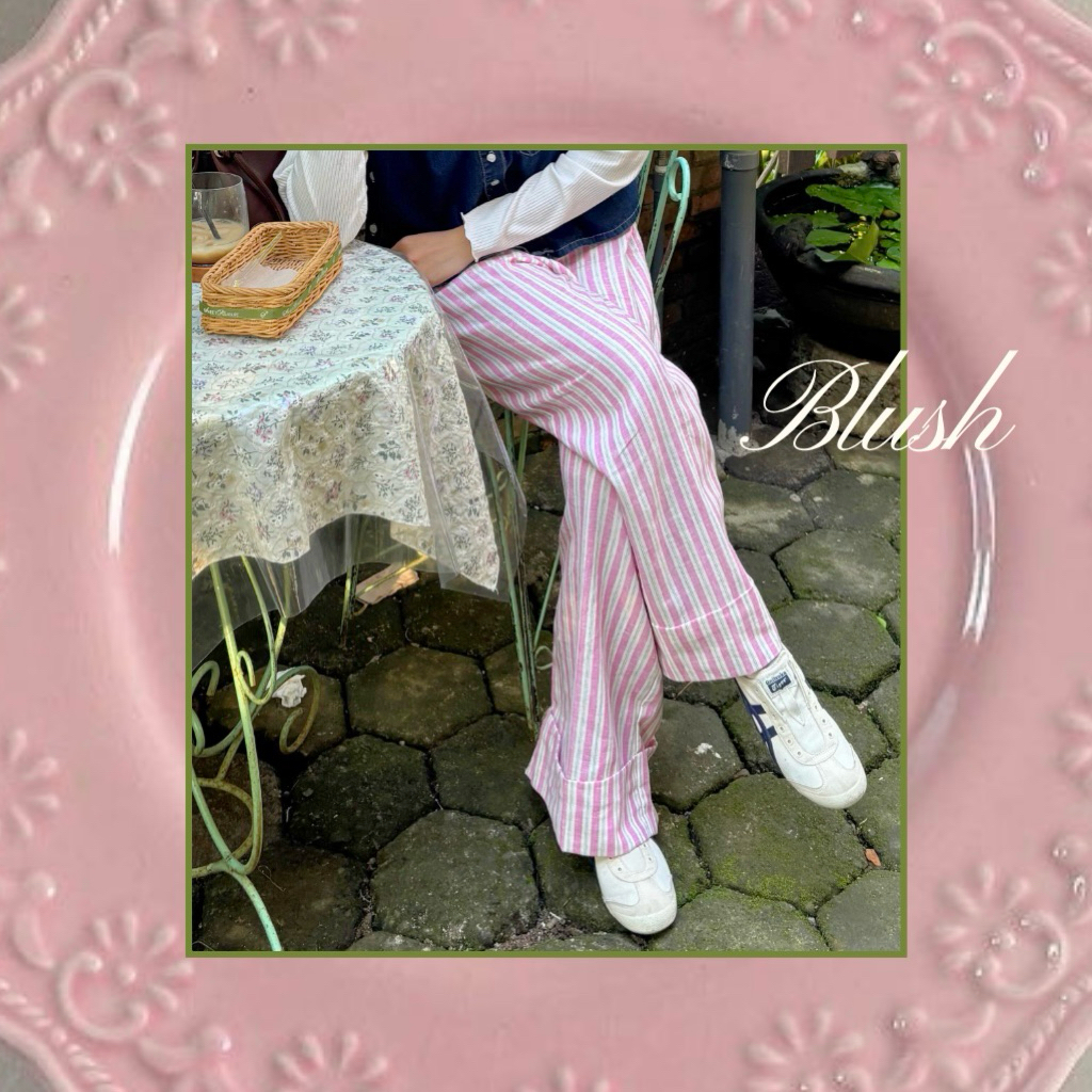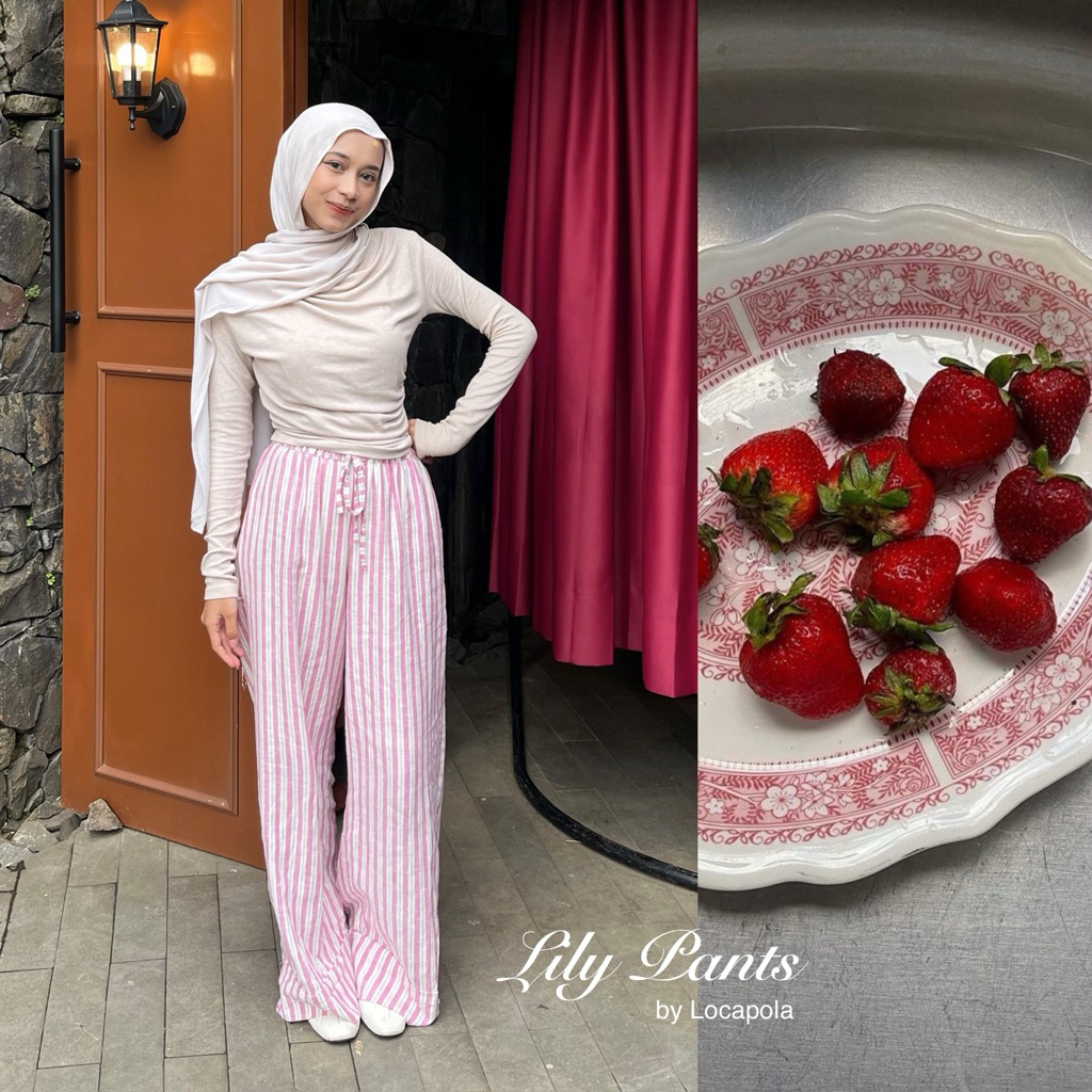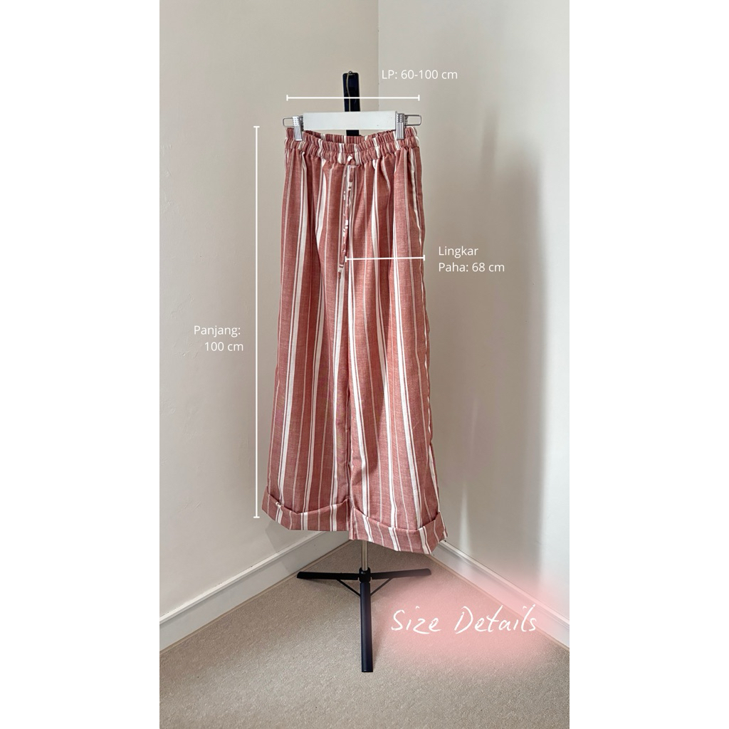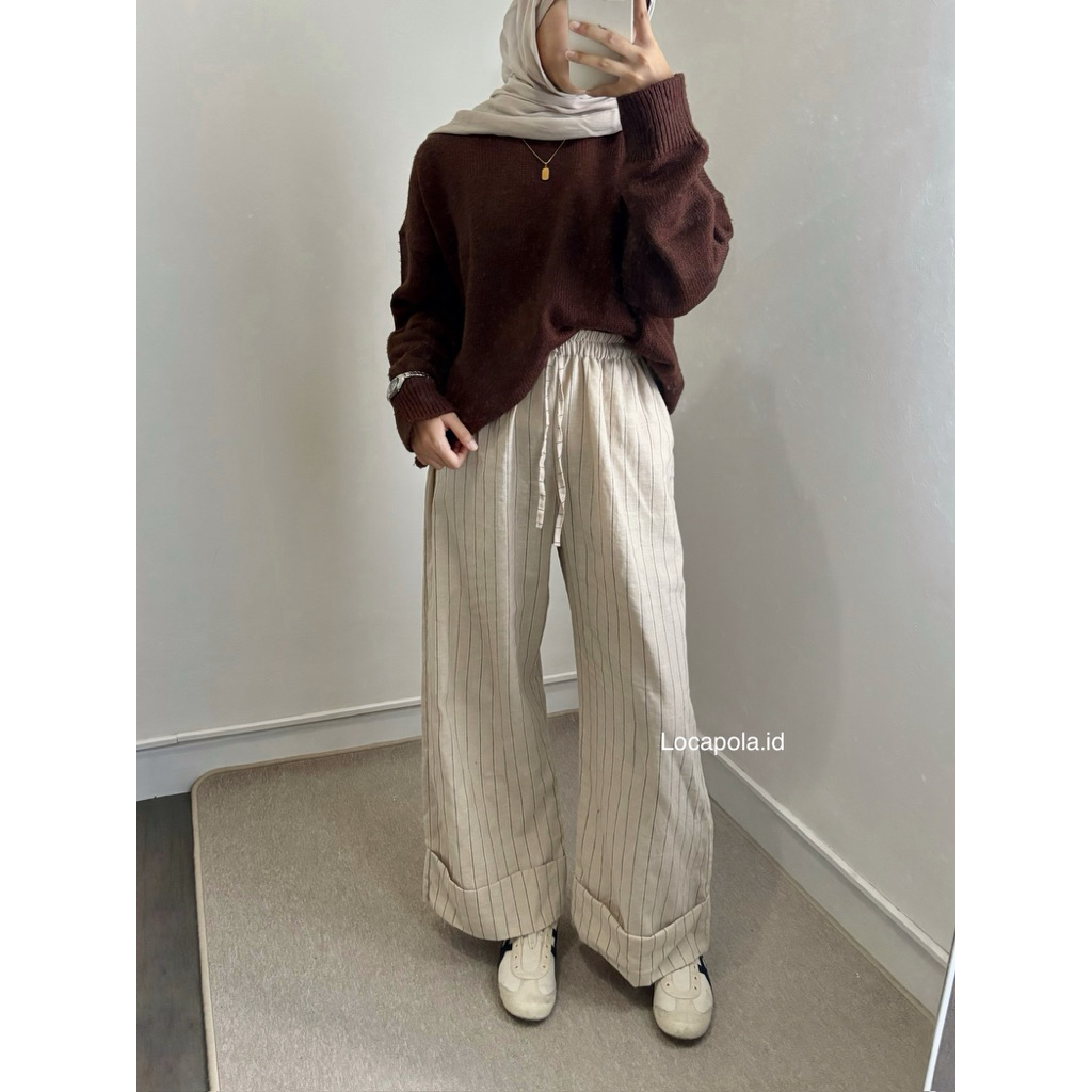 [LOCAPOLA] Lily Stripe Pants Summer pants Everyday pants Linen Pants/celana Linen panjang baggy wanita garis salur celan