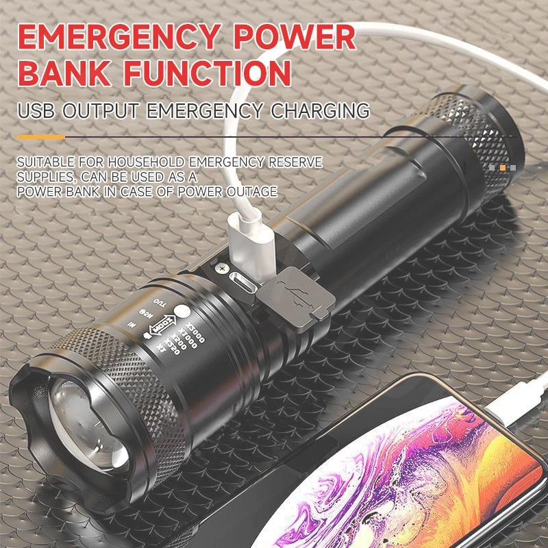 Rechargeable Senter LED Super Terang 10000 Lumens Jarak Jauh Ringan Tahan Air IPX4 Zoom Senter Swat Police Terbaik