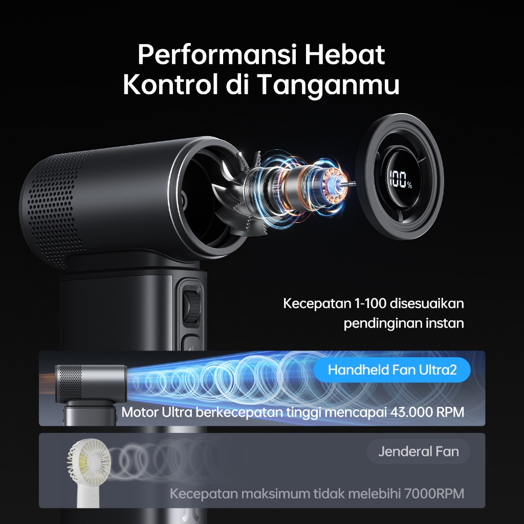 JisuLife 2025-NEW Kipas Tangan Turbo 100 Level 17m/s Kecepatan Tinggi Baterai 9000mAh Tahan Lama 25 Jam USB 3 in 1 Bisa