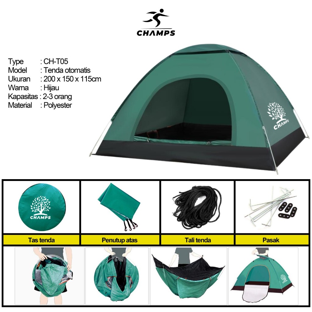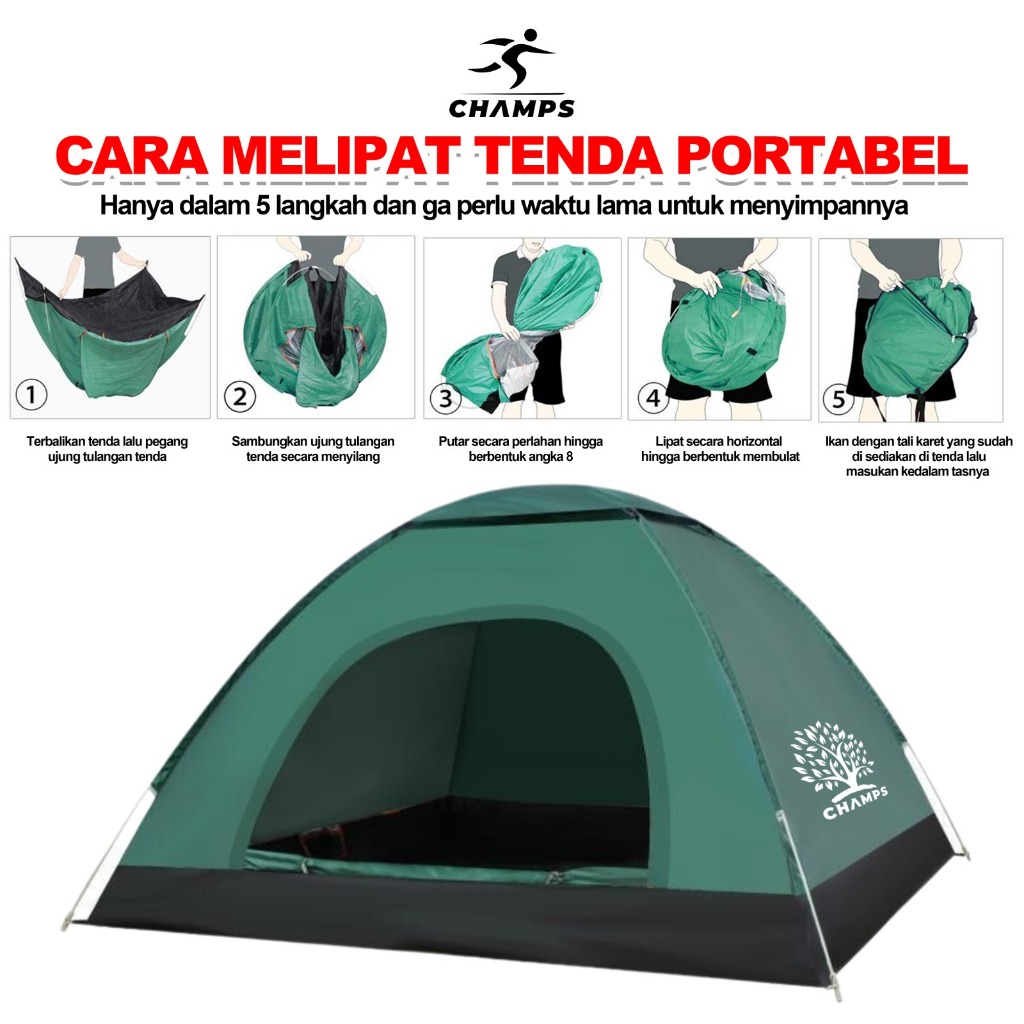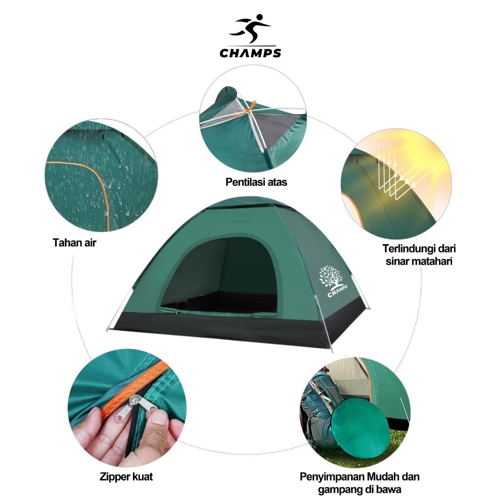 CHAMPS Tenda Camping 4-6 Orang – Tenda Dome Outdoor & Indoor Gunung Manual Perlu Dirakit