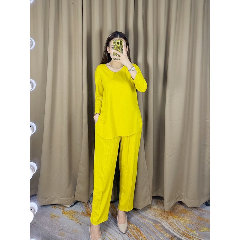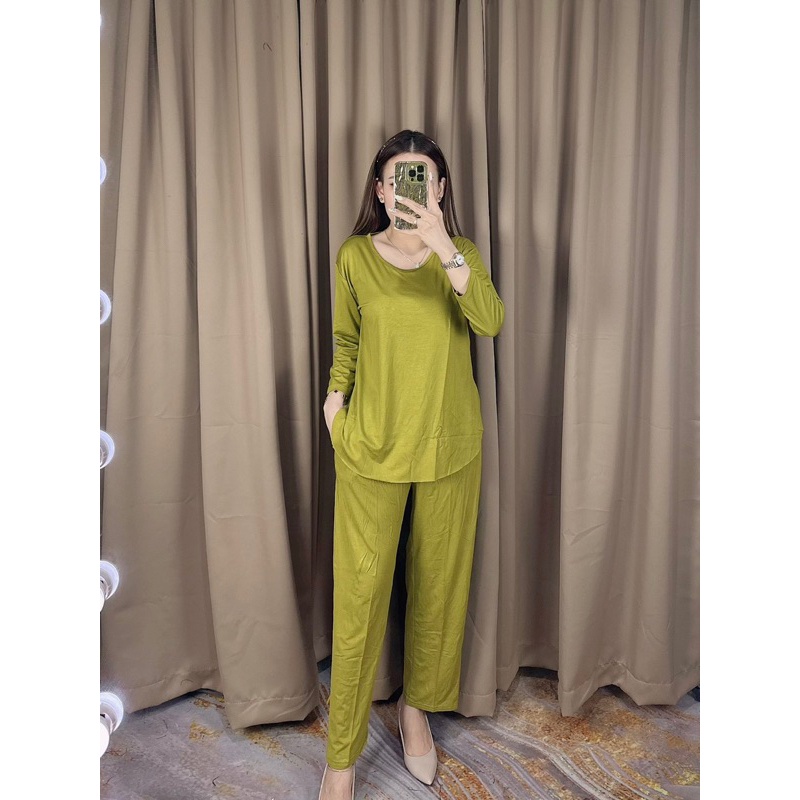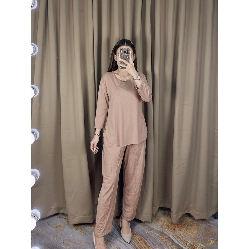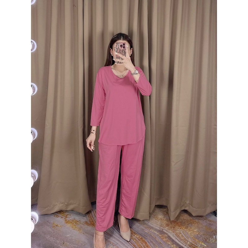 Setelan Polos Lengan 78 : One Set Celana Panjang : Homewear Set