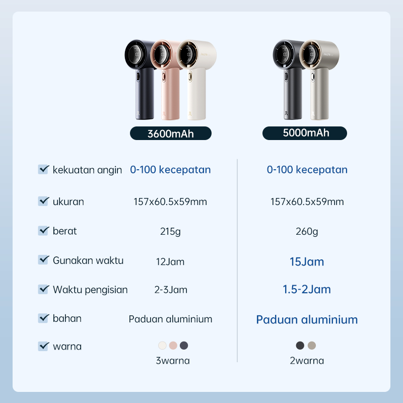 JISULIFE Kipas Angin Mini Portable Blower Angin Super Kencang High Speed Brushless Turbo Jet Kipas Pendingin Cepat Denga