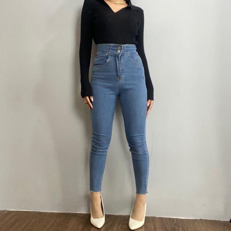 Celana Skinny Jeans HW Celana Pensil Silang Wanita Celana Jeans Korean Style Murah Gratis Ongkir