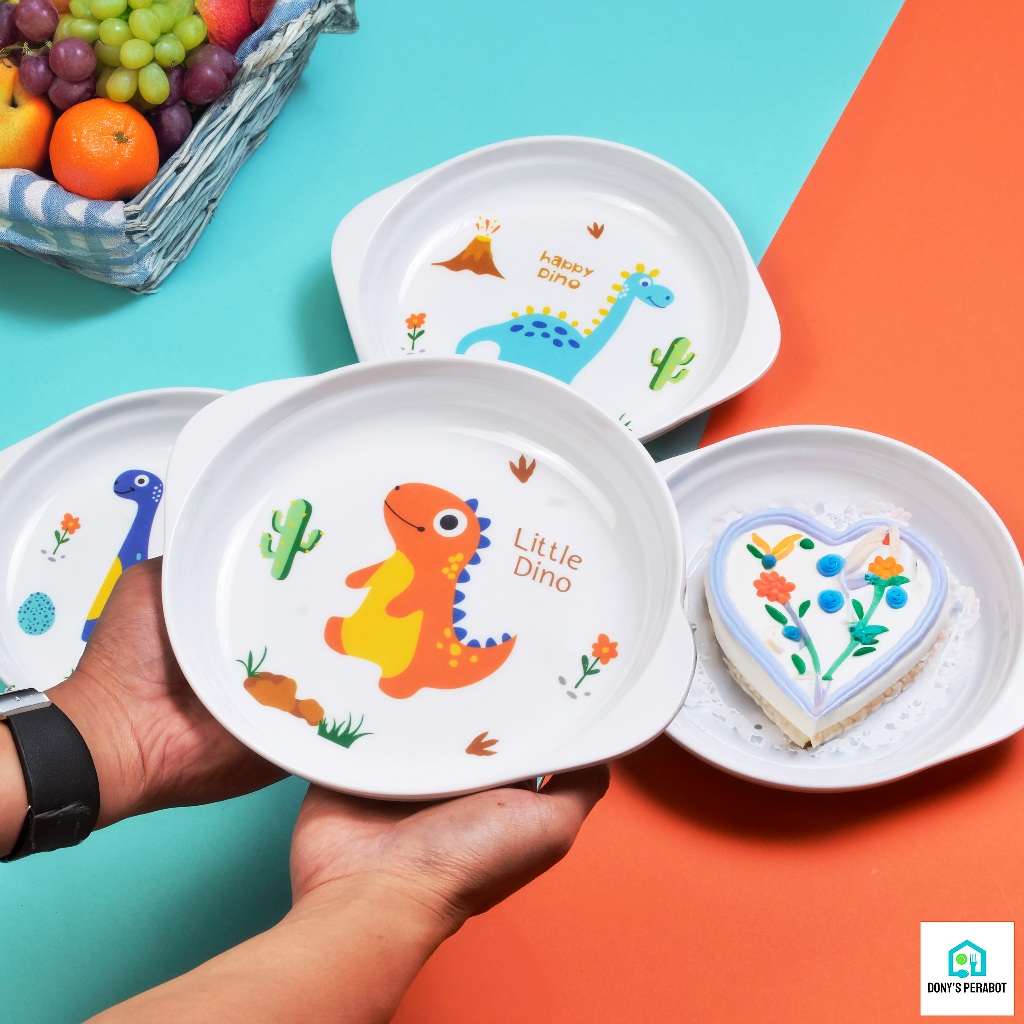 Piring Makan Anak Melamin Motif Dino 8 / 9 Inch (Motif Tidak Pudar) Tebal Aman Untuk Anak, Anti Pecah Murah Gratis Ongki
