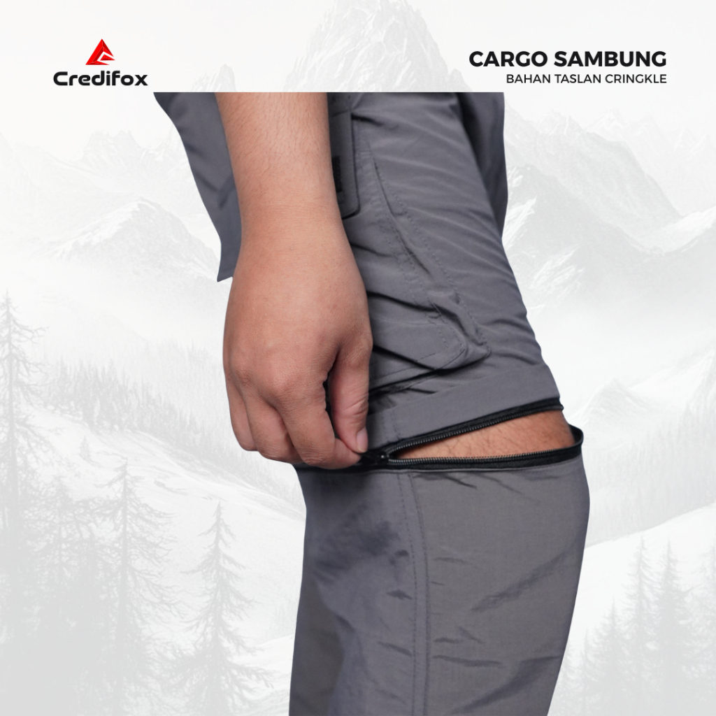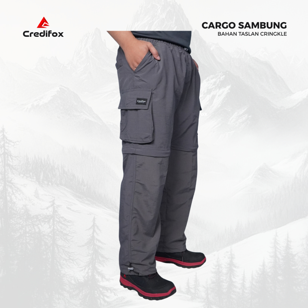 CREDIFOX Celana Cargo Sambung Panjang Pria Bahan Taslan Cringkle - Celana Hiking - Celana Outdoor