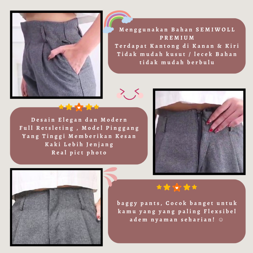 AMOURA Celana Wanita Ankel Baggy Skinny Pants Boyfriend Celana Panjang Wanita Kekinian Korean Style Murah Gratis Ongkir