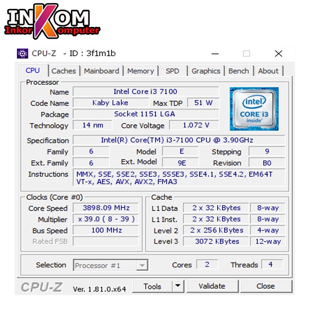 Intel Core Processor i3 6100/ i3 7100/ i3 8100/ i3 9100 LGA1151