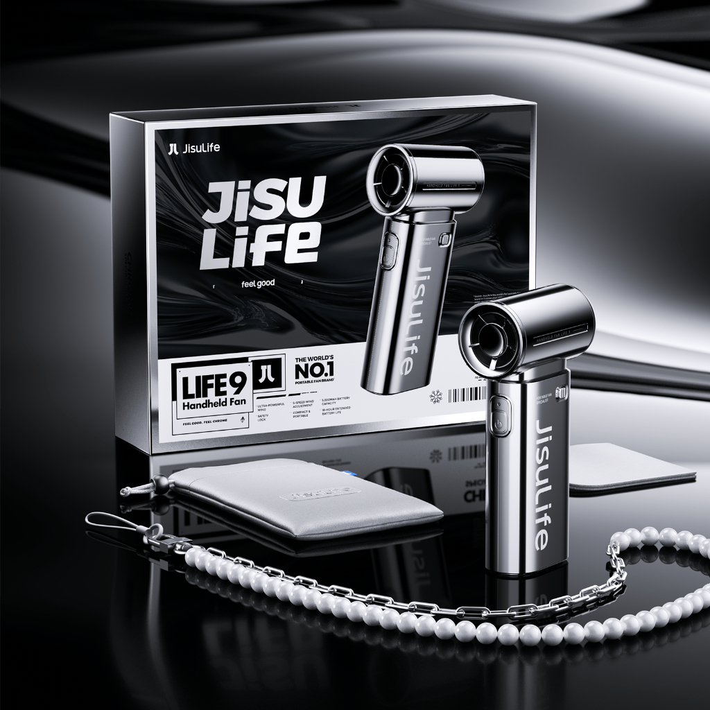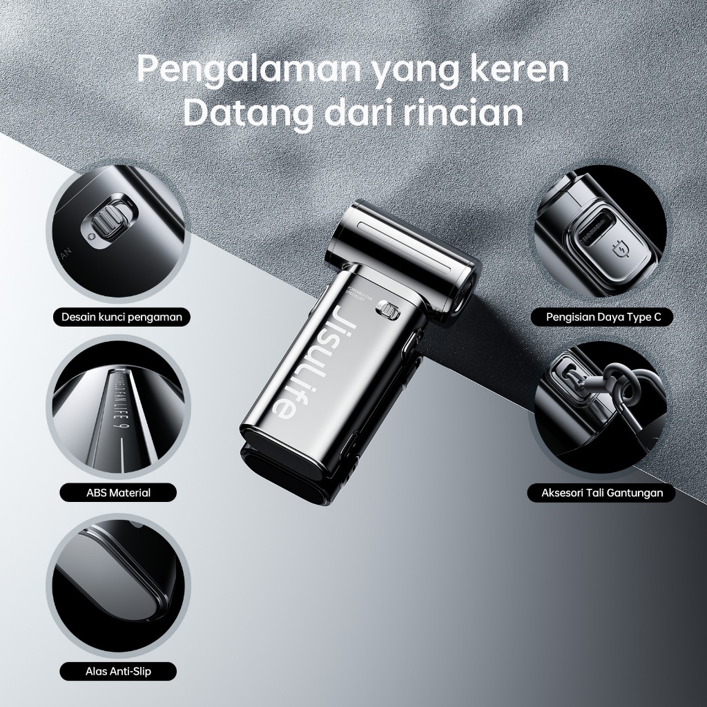 JisuLife Kipas Tangan Portable Turbo 5 Level Angin Kuat, Baterai 5000mAh Tahan 18 Jam, Desain Chrome Mirror, Compact unt