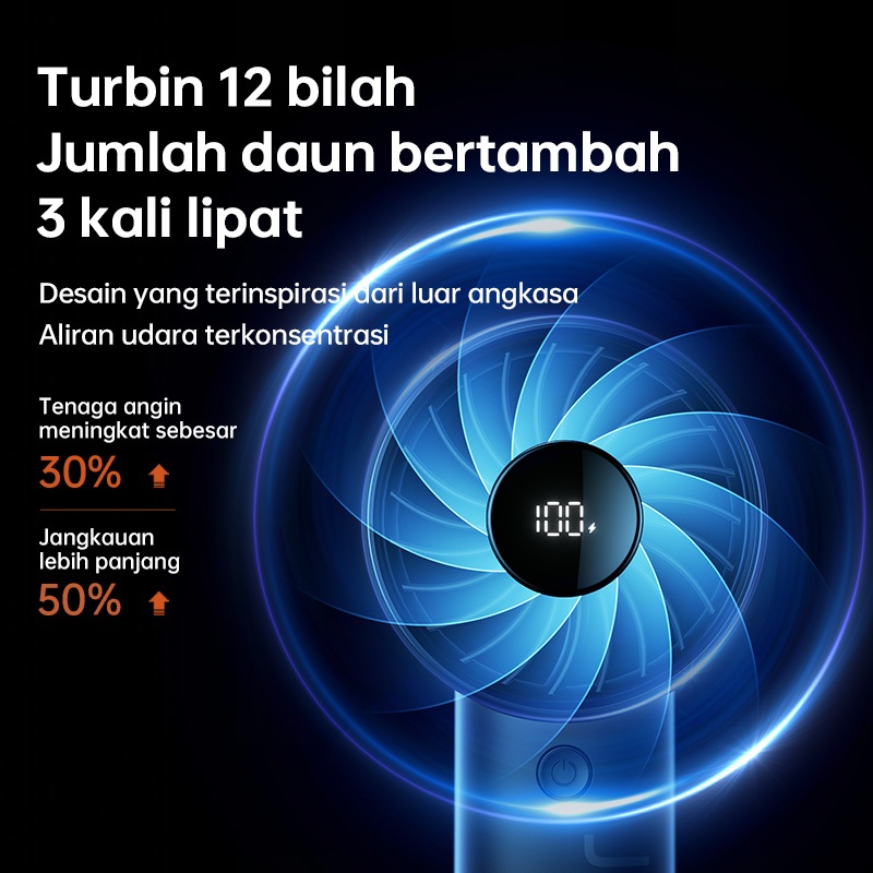 JISULIFE Kipas Angin Kecil 5000mAh yang di cas 12 Bilah Dengan Daya Tahan Baterai 17 Jam Dengan Layar LED