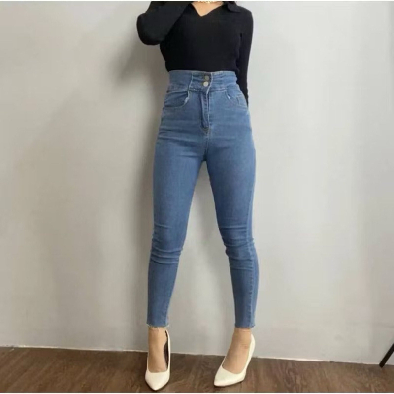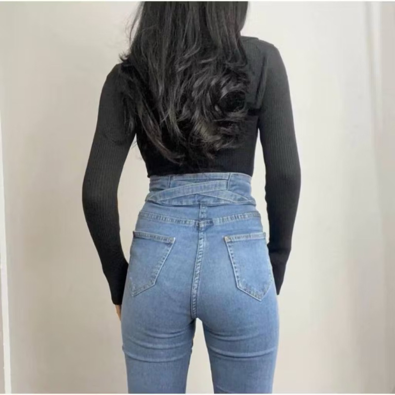 Celana Jeans Wanita Skinny J32 Highwaist Melar Pensil Silang Cewek Street Terbaru by RNB DENIM Murah Gratis Ongkir