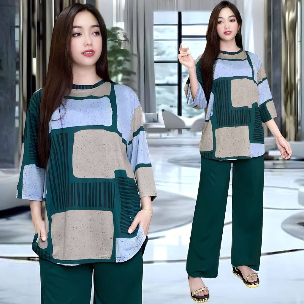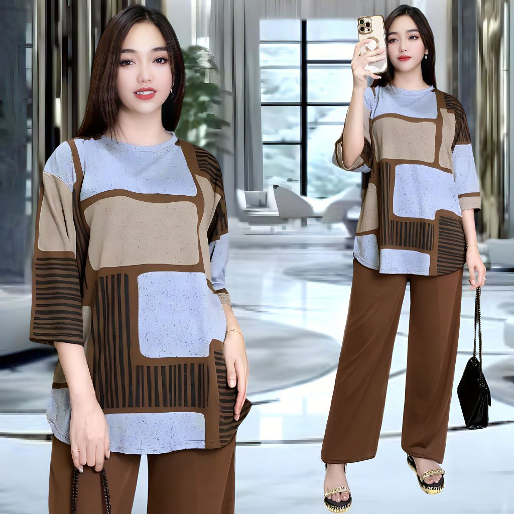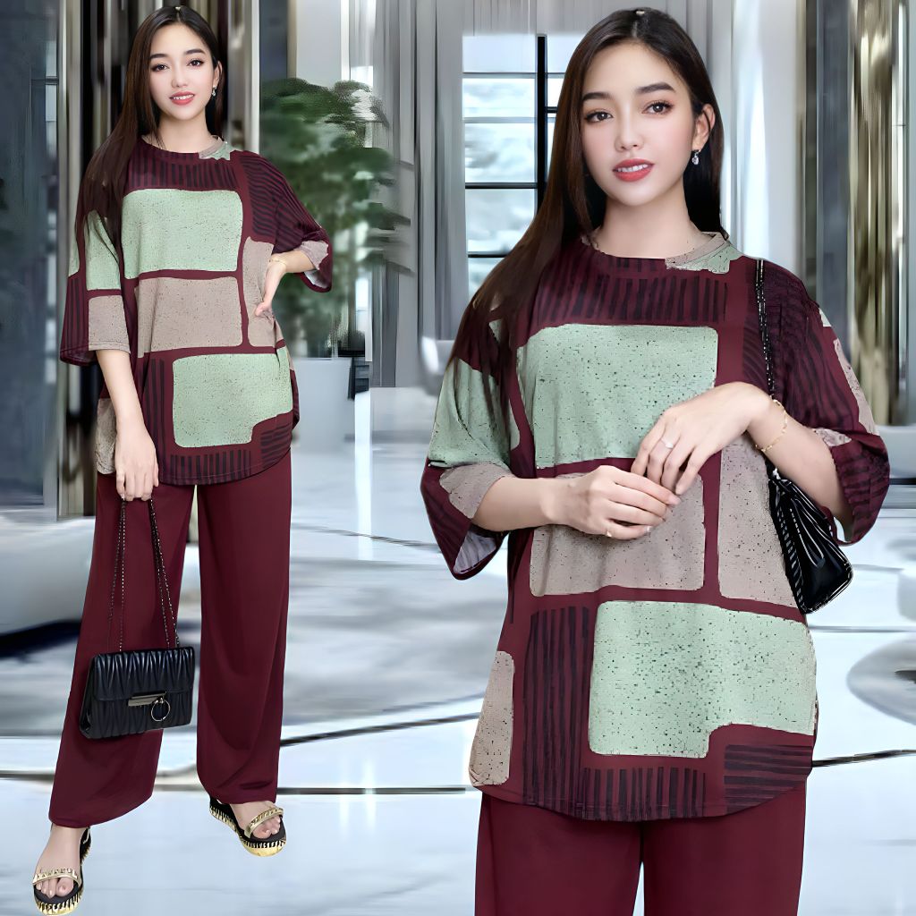 CHELLA SETELAN WANITA LD 120 & LD 130 CELANA LURUS DAN ATASAN OVAL BELAHAN KIRI DAN KANAN OVERSIZE WANITA