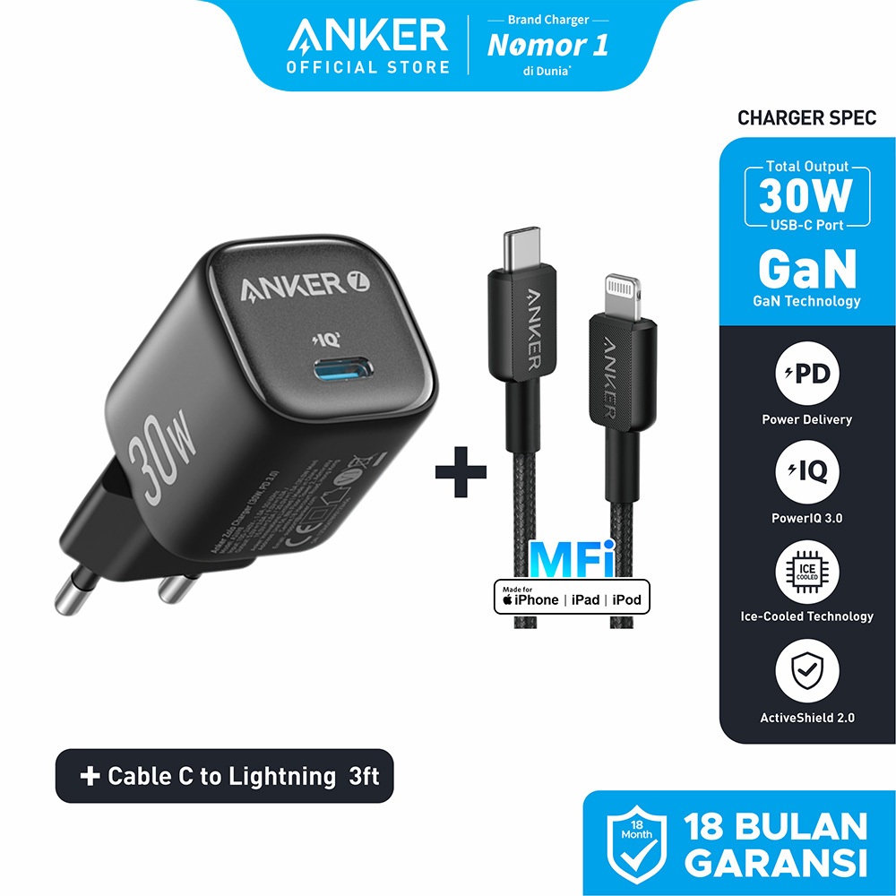 Anker 20W 30W Wall Charger Adaptor GaN USB Type C Lightning MFi Fast Charging PD for iPhone 17 16 15 14 13 Samsung Ice-C