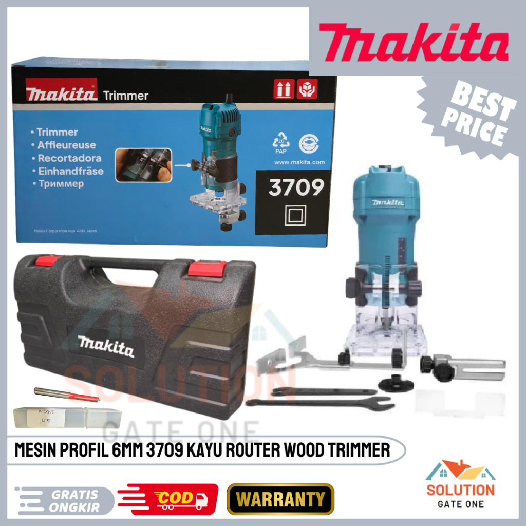 Mesin Trimmer/Profil Makita 3709 - Mesin Kayu 6mm, Daya Listrik 530 Watt