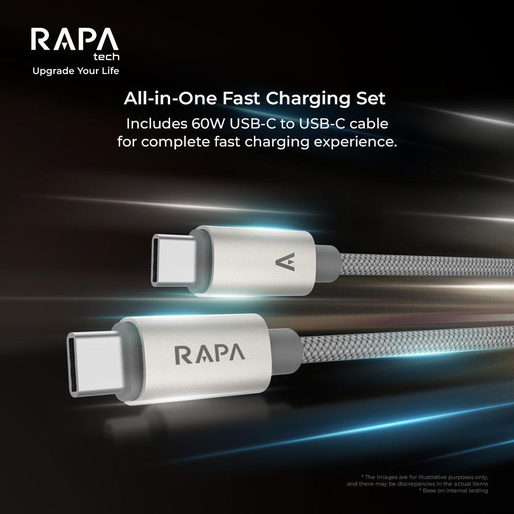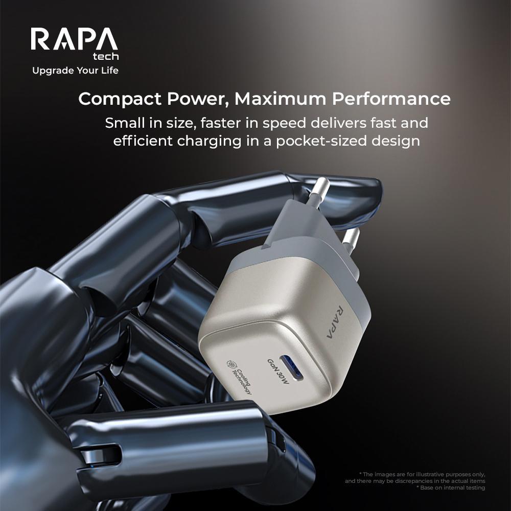 RAPAtech Power Mini GaN 30W Charger iPhone 15 16 Type C to C Nylon Braided Cable (PD 30W) Ice-Cooled Fast Charging Techn