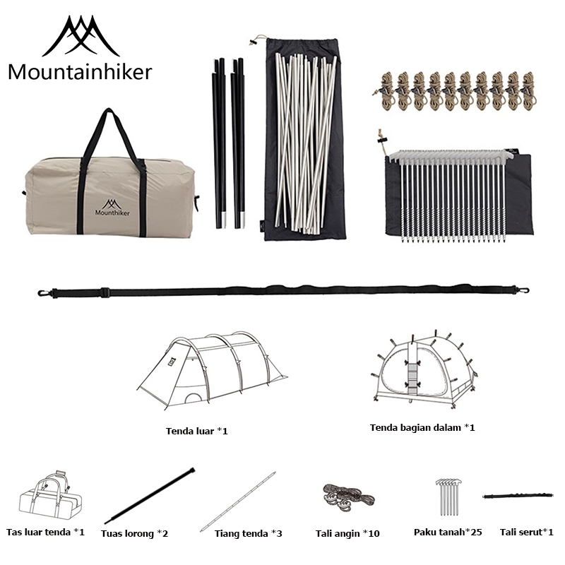 Mountainhiker Tenda Camping Tunnel 4P Double Layer Waterproof Tent Tenda belakang mobil