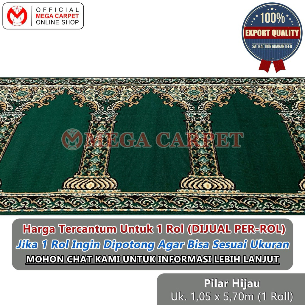TERLARIS Sajadah Rol / Karpet Masjid Mushola (1 Rol ukuran 1,05 x 5,70 meter) - Motif Pilar Hijau