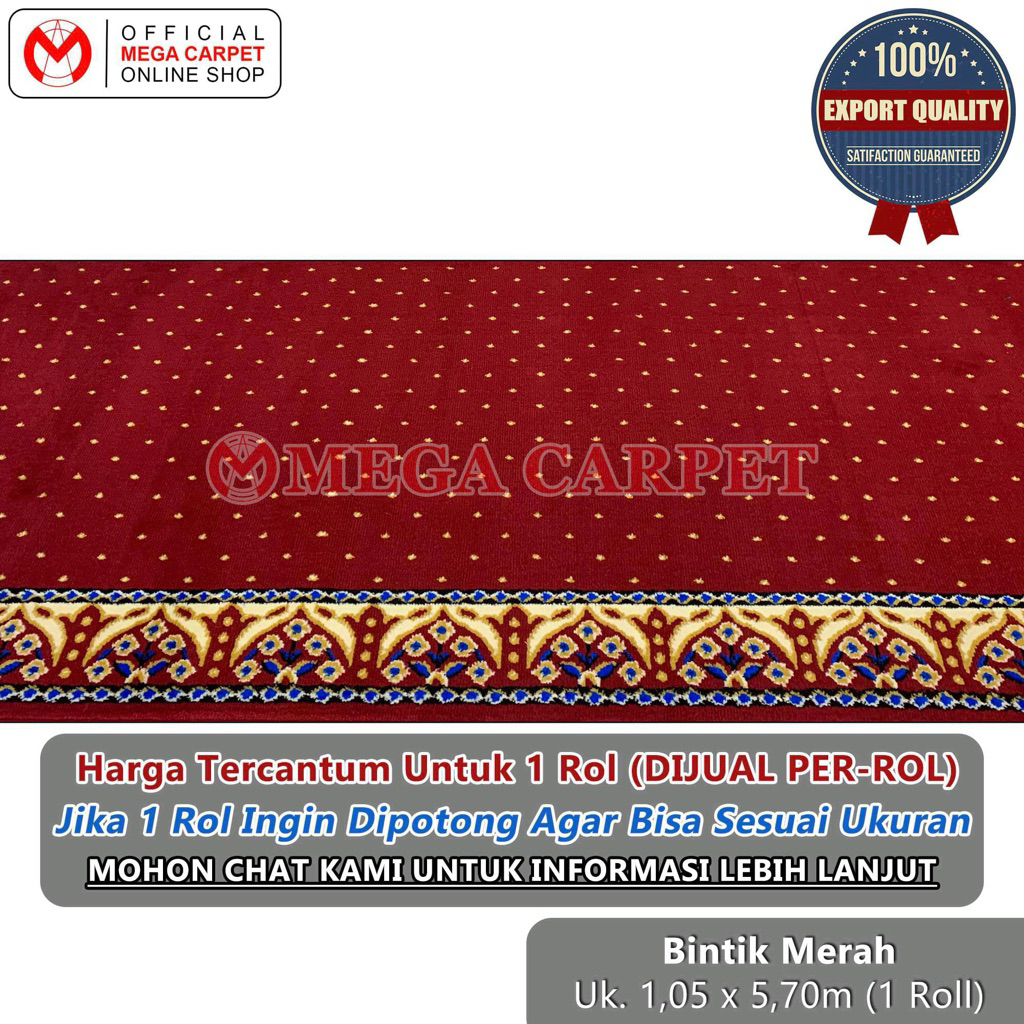 TERLARIS Sajadah Rol / Karpet Masjid Mushola (1 Rol ukuran 1,05 x 5,70 meter) - Motif Bintik Merah