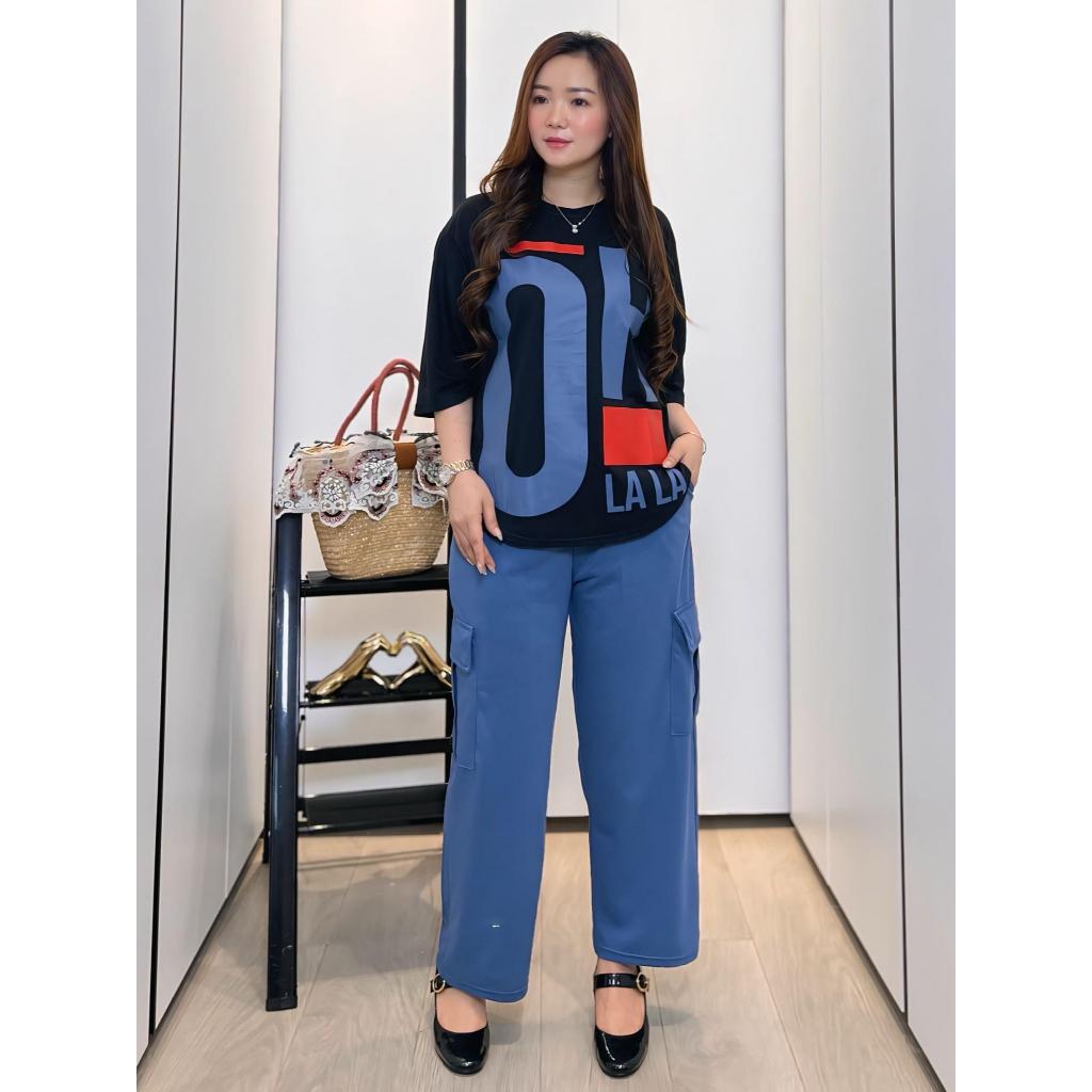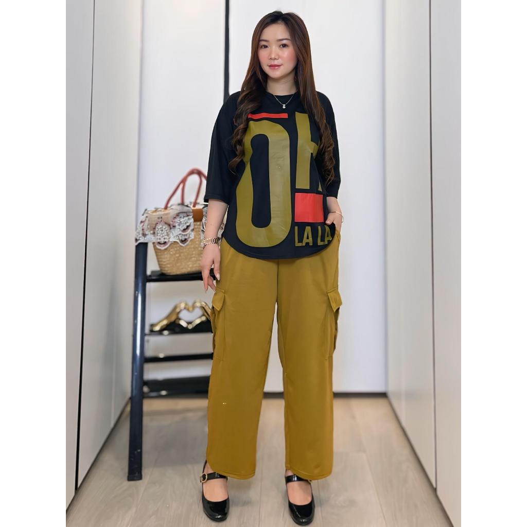Setelan Cargo Oversize LD 120 CM Setelan Wanita Atasan Lengan 34 dan Celana Cargo Setelan Oh Lala Fashion Muslim SR5370