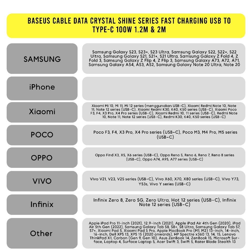 Baseus Cable Data Crystal Shine Series Fast Charging USB to Type-C 100W 1.2m & 2m