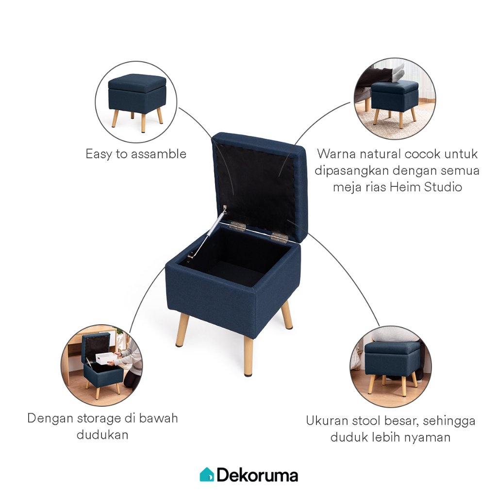 TERLARIS Dekoruma SURU Square Stool Minimalis / Stool Kain - Biru