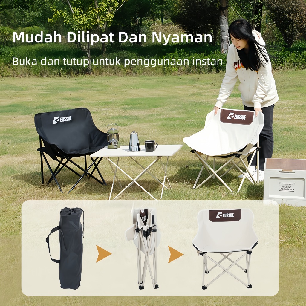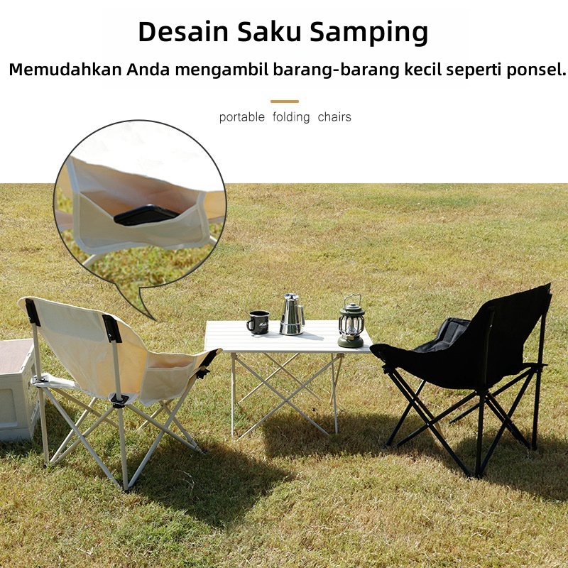 TERLARIS Sanwild Outdoor Folding Chairs Kursi Bulan Kain Oxford Kursi Lipat Bulat Bentuk Bulan Dapat dilipat Dengan Tas