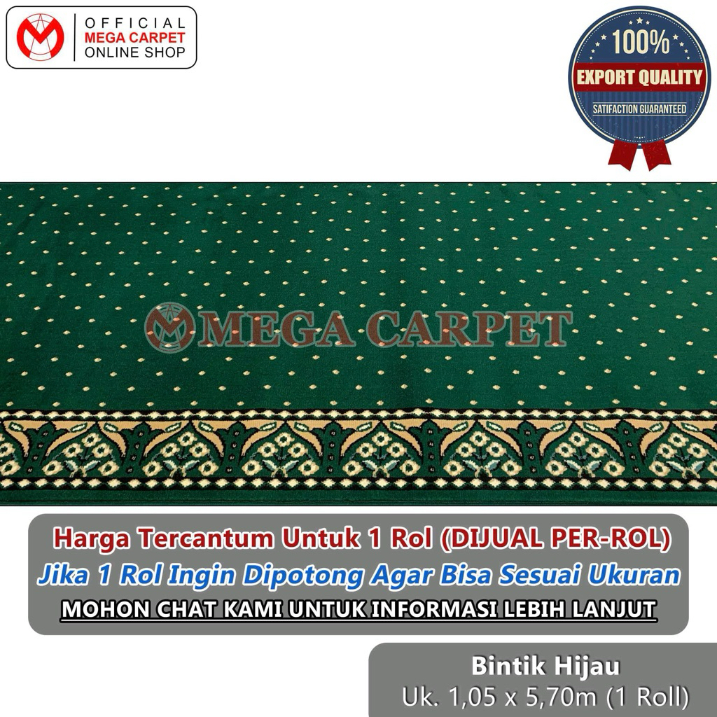 TERLARIS Sajadah Rol / Karpet Masjid Mushola (1 Rol ukuran 1,05 x 5,70 meter) - Motif Bintik Hijau