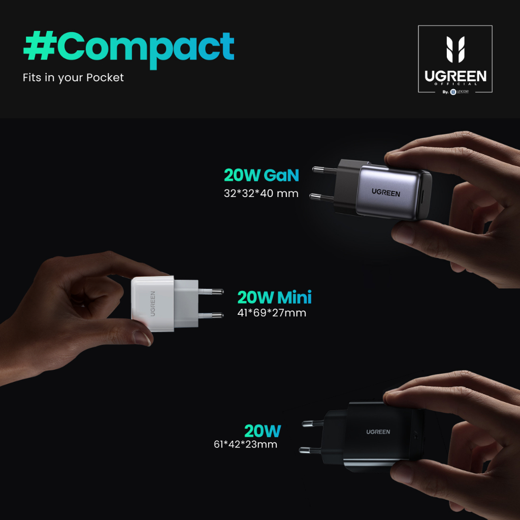 Kepala Charger iPhone 16 15 14 13 12 11 Pro Max Plus UGREEN 20W Adaptor Type C Fast Charging
