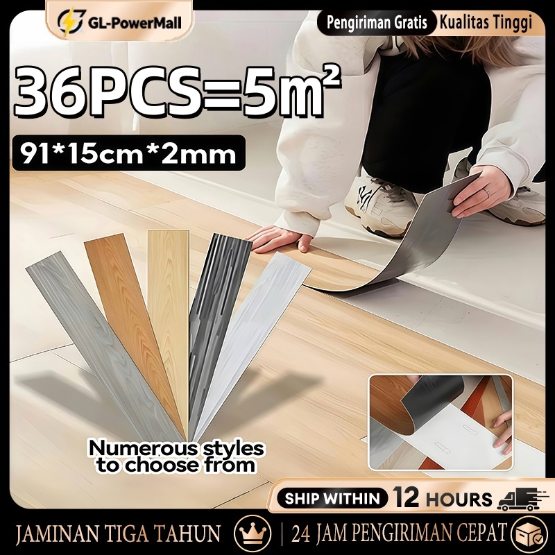TERLARIS Floor Lantai Vinyl Stiker 1BOX (36 Pcs) 91.5cm x 15.2cm Lantai kayu parquet Dengan Lem Sticker Vinyl Lantai PVC