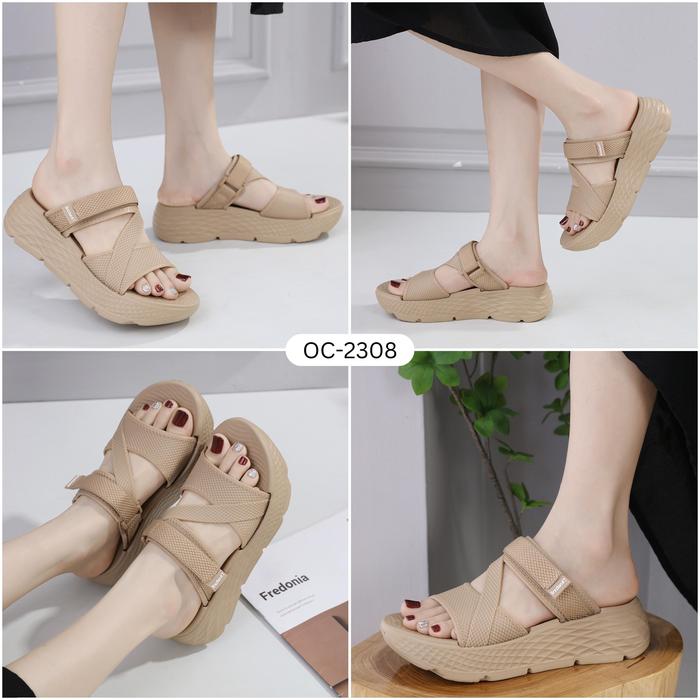 OCTAVIA Sandal Slide Slip On Wedges Wanita with Velcro