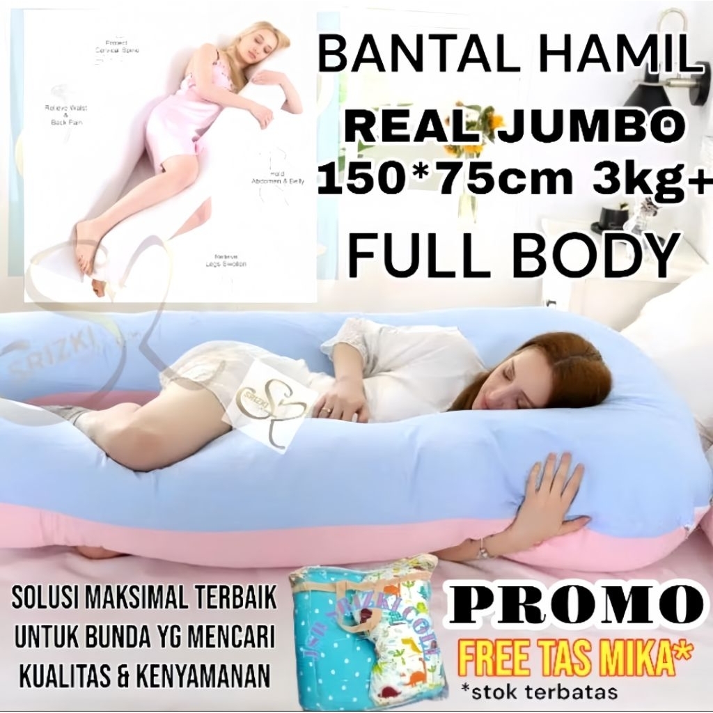 Bantal hamil JUMBO 150*75cm PREMIUM COVER 2LAPIS + FREE TAS /2 lapis furing + sarung bahan katun dingin nyaman
