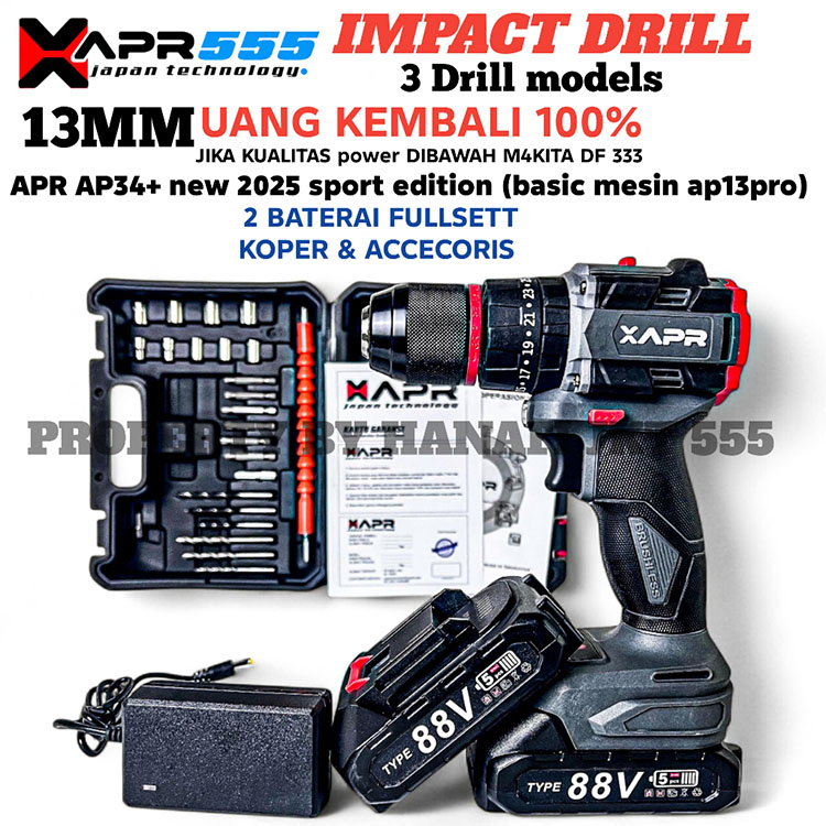 NEW BOR IMPACT DRILL BRUSHLESS APR JAPAN TYPE AP34+ 13mm keyless auto lock 2baterai lxt 88v GARANSI