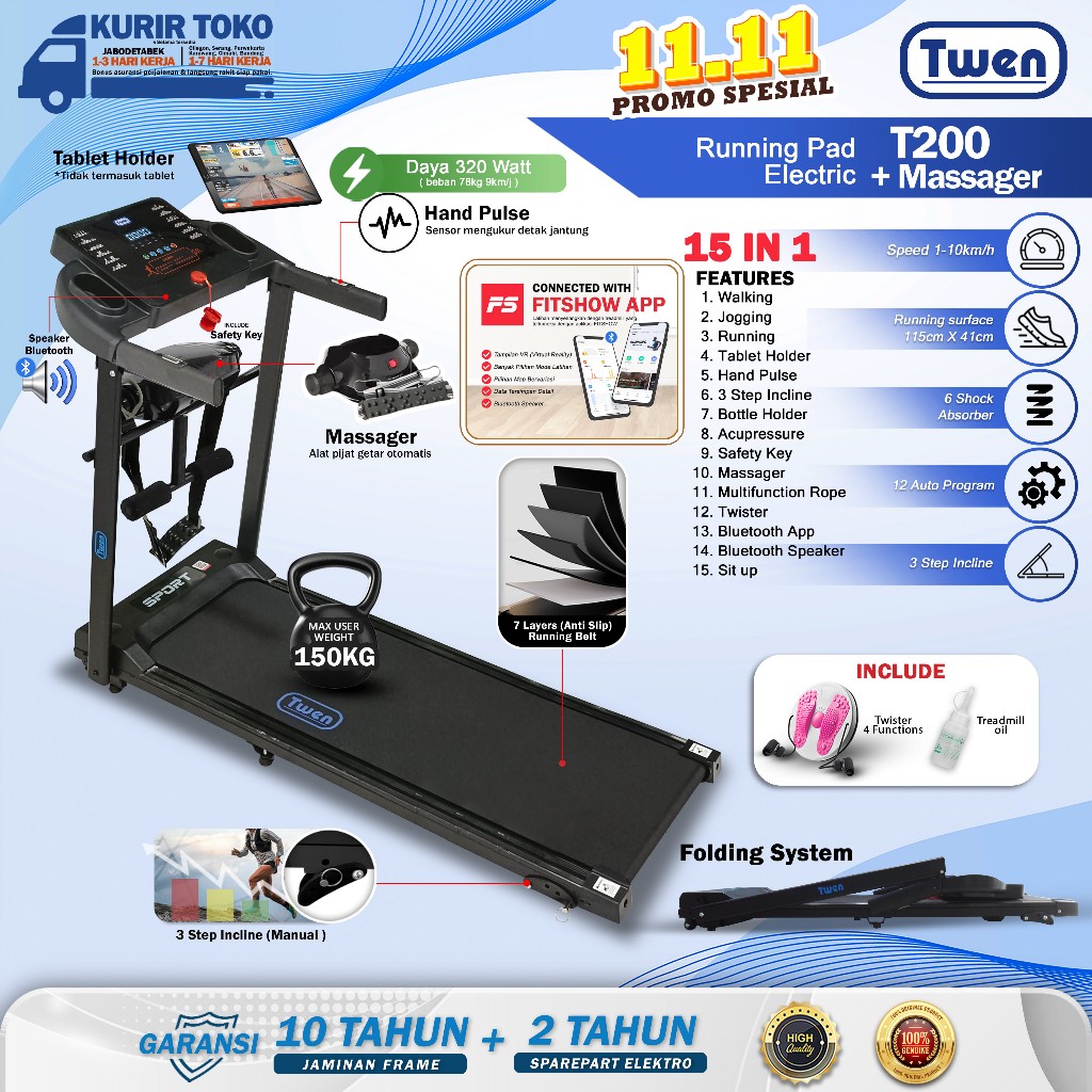 TWEN T200WA New T200 New Treadmill Elektrik Bodimax Listrik Manual Lipat Murah Ebuy Twen My Hi Alat Olahraga Tanpa Dp