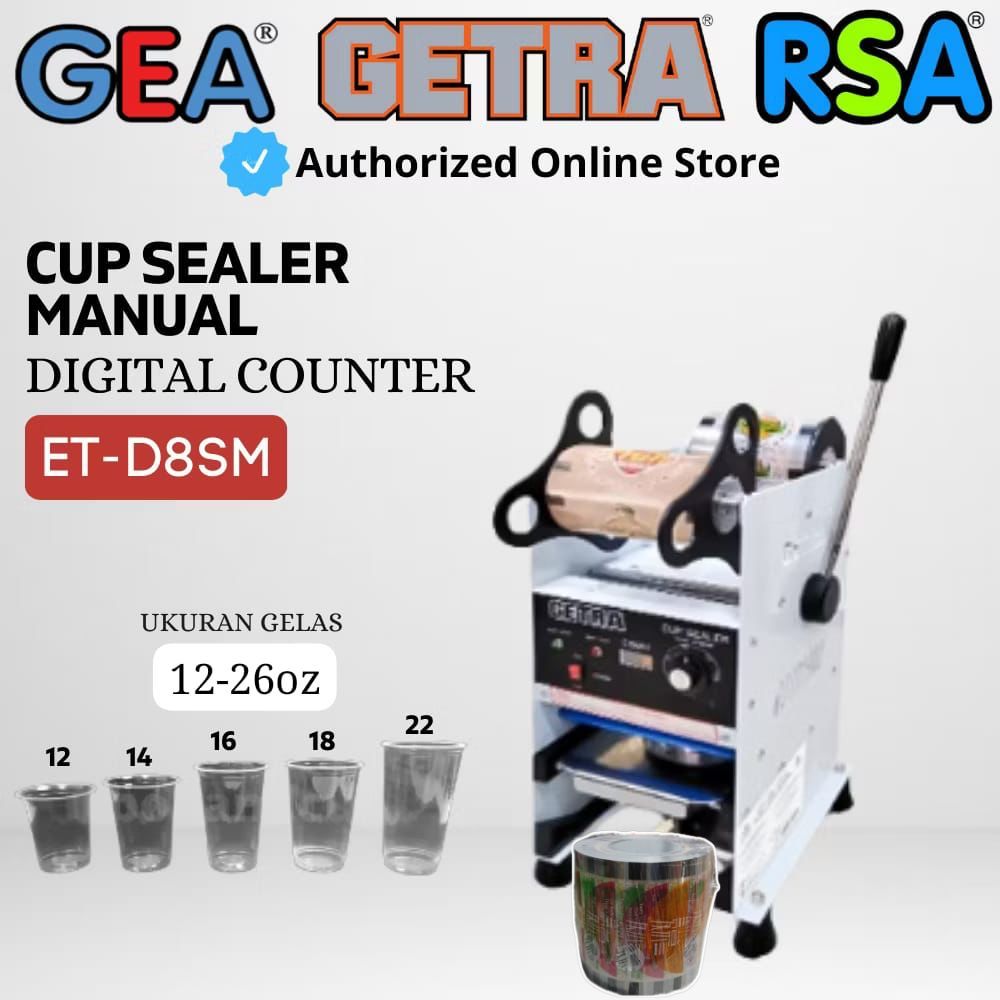 GETRA Mesin Pres Cup Sealer 8-22 OZ Alat Press Penutup Minuman Es Cup Gelas Plastik Otomatis Murah Matrix Getra Eton